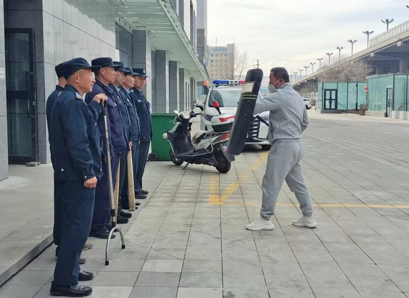 在民警同志的帶領(lǐng)下學(xué)習(xí)應(yīng)急事件如何應(yīng)對(duì)處理后,應(yīng)急安全員再次已實(shí)操方式帶領(lǐng)安保人員熟練了防護(hù)盾、防暴棍、防爆叉等防暴器材的使用方法,并及時(shí)糾正安保人員在使用防暴器械過(guò)程中存在的問(wèn)題,確保他們能夠正確有效的操作防暴器械。