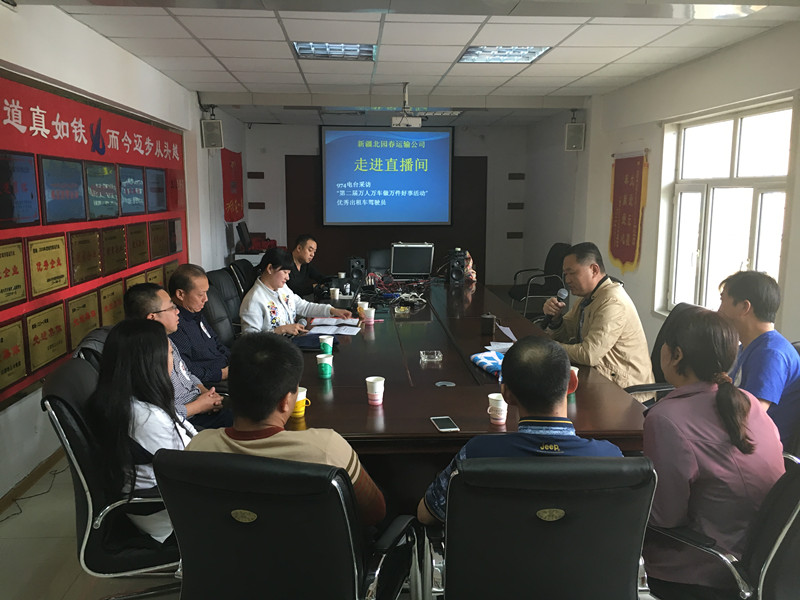 5月17日,烏魯木齊人民廣播電臺(tái)97.4交通廣播“第一公益”欄目----“做文明有禮的烏魯木齊人暨第二屆萬人萬車做萬件好事之走進(jìn)北園春運(yùn)輸公司” 在運(yùn)輸公司會(huì)議室設(shè)置了分直播室,鐘慶芳總經(jīng)理攜同公司8名優(yōu)秀出租車駕駛員接受了97.4交通廣播節(jié)目主持人尤歡的現(xiàn)場直播采訪。節(jié)目中,鐘慶芳總經(jīng)理向節(jié)目主持人介紹了運(yùn)輸公司的發(fā)展近況及近年來積極參與公益事業(yè)活動(dòng)的情況,8名優(yōu)秀駕駛員也分別講述了各自做好人好事的事跡經(jīng)過及經(jīng)驗(yàn)分享,節(jié)目現(xiàn)場主持人還連線采訪了接受過幫助的乘客,他們借此直播機(jī)會(huì),向北園春運(yùn)輸公司的的哥的姐們表達(dá)了最誠摯的敬意與謝意。
